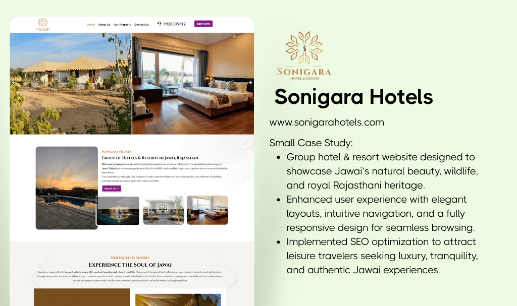 Webolive offers professional website design services for hotels, resorts, and hospitality businesses. This company is led by Vikram Chouhan, the founder of 3i Planet. With 11 years of experience, we are a trusted hotel website design company committed to strengthening the Indian hotel industry online.