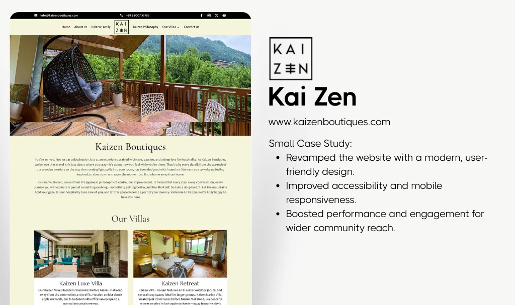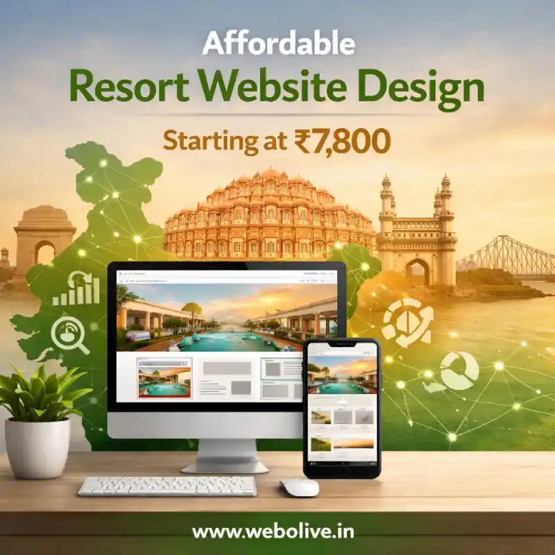 A low-cost resort web design service can be customized to suit any budget. Our affordable resort website design services start at just ₹7,800. We design mobile-friendly, fast-loading, and SEO-optimized resort websites to enhance your online presence. Contact us 24/7 for assistance. The Webolive resort website solution is perfect for anyone looking for a long-lasting, budget-friendly solution. Contact us today! Call/WhatsApp: +91 96028 41237.